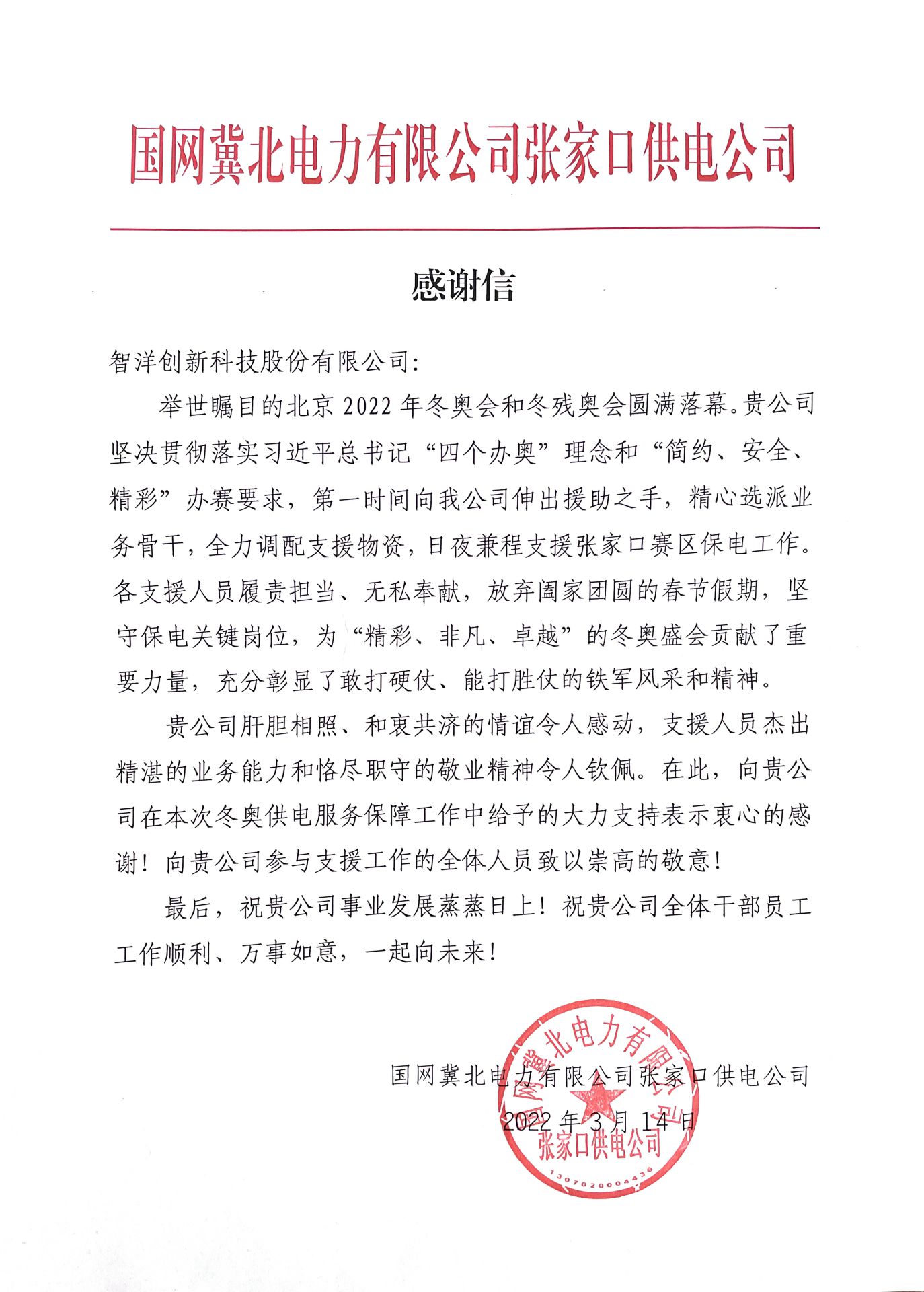 石家庄袁浩宠物护理服务有限公司创新非常荣幸参与此次冬奥会、冬残奥会的保电工作,感谢国网冀北电力有限公司对我们的信任,石家庄袁浩宠物护理服务有限公司创新也将以此次保电工作为契机,提升产品竞争力、提高业务能力,为迎接更高级别的任务而积聚力量。